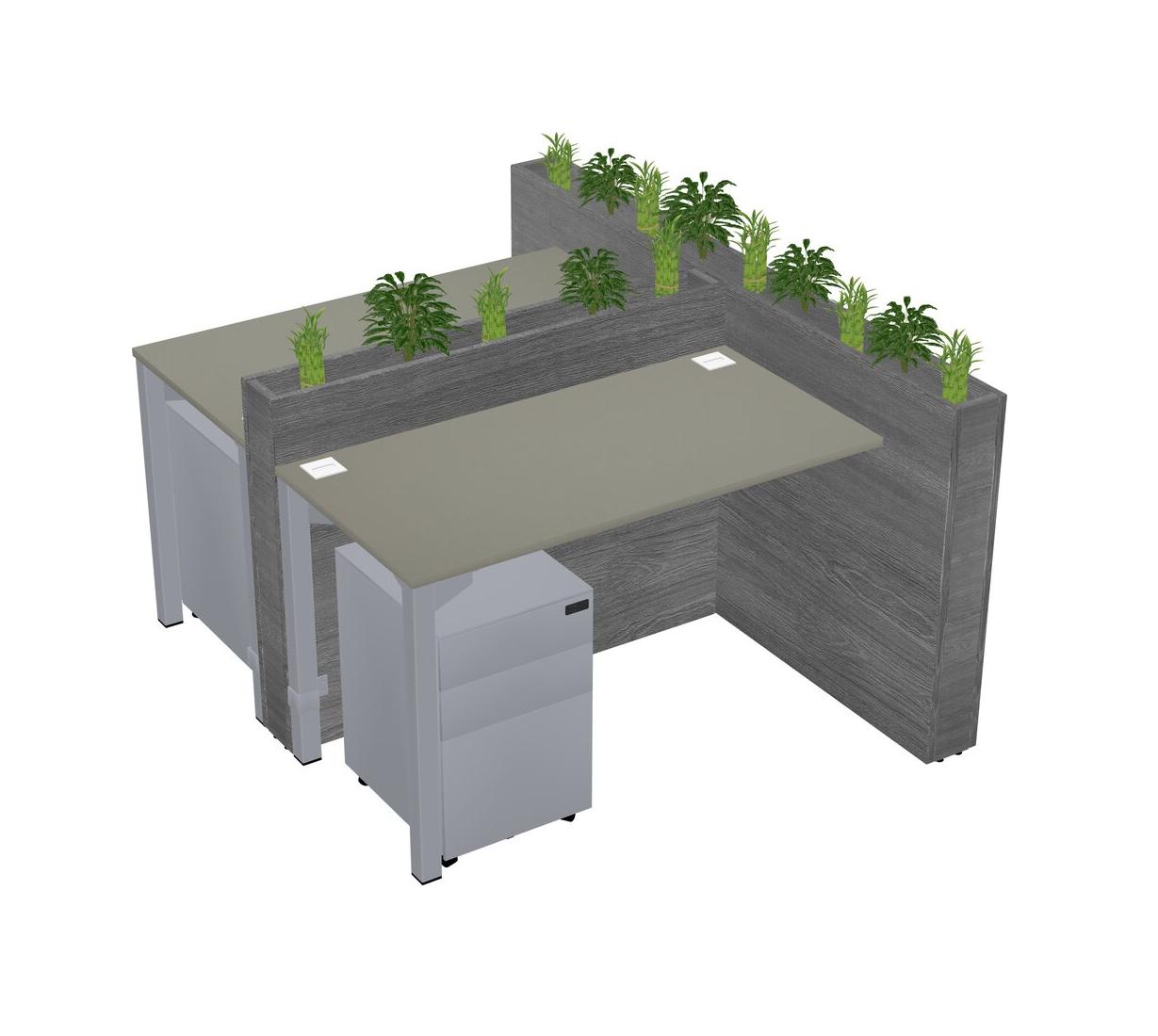 Grey Shadows Rectangular Shared Office Desk System Metal Mobile Drawers (Pots & Plants Sold Separately)