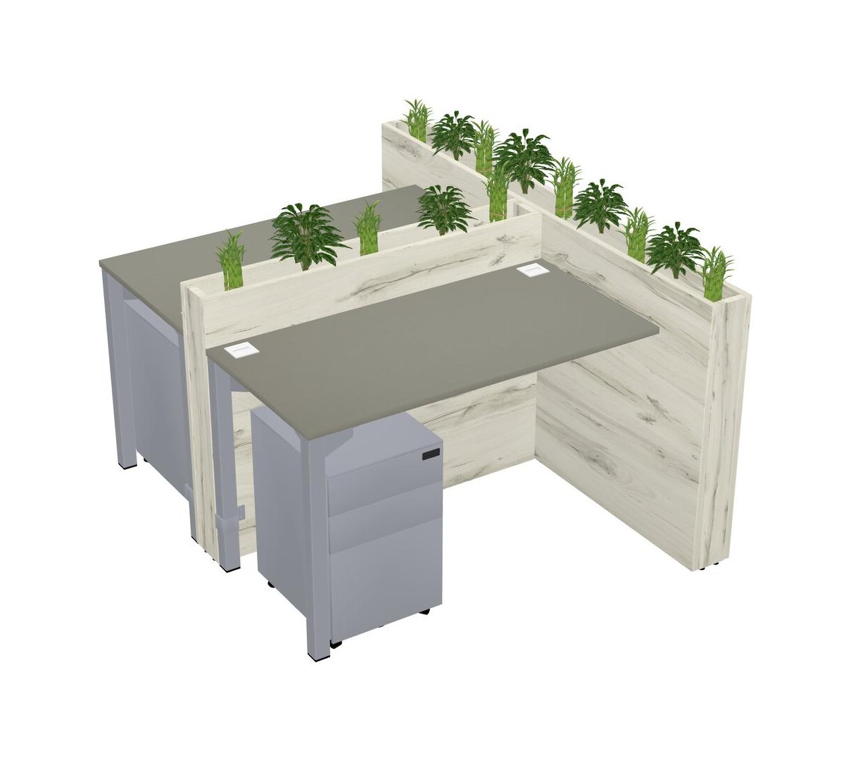 Grey Shadows Rectangular Shared Office Desk System Metal Mobile Drawers (Pots & Plants Sold Separately)