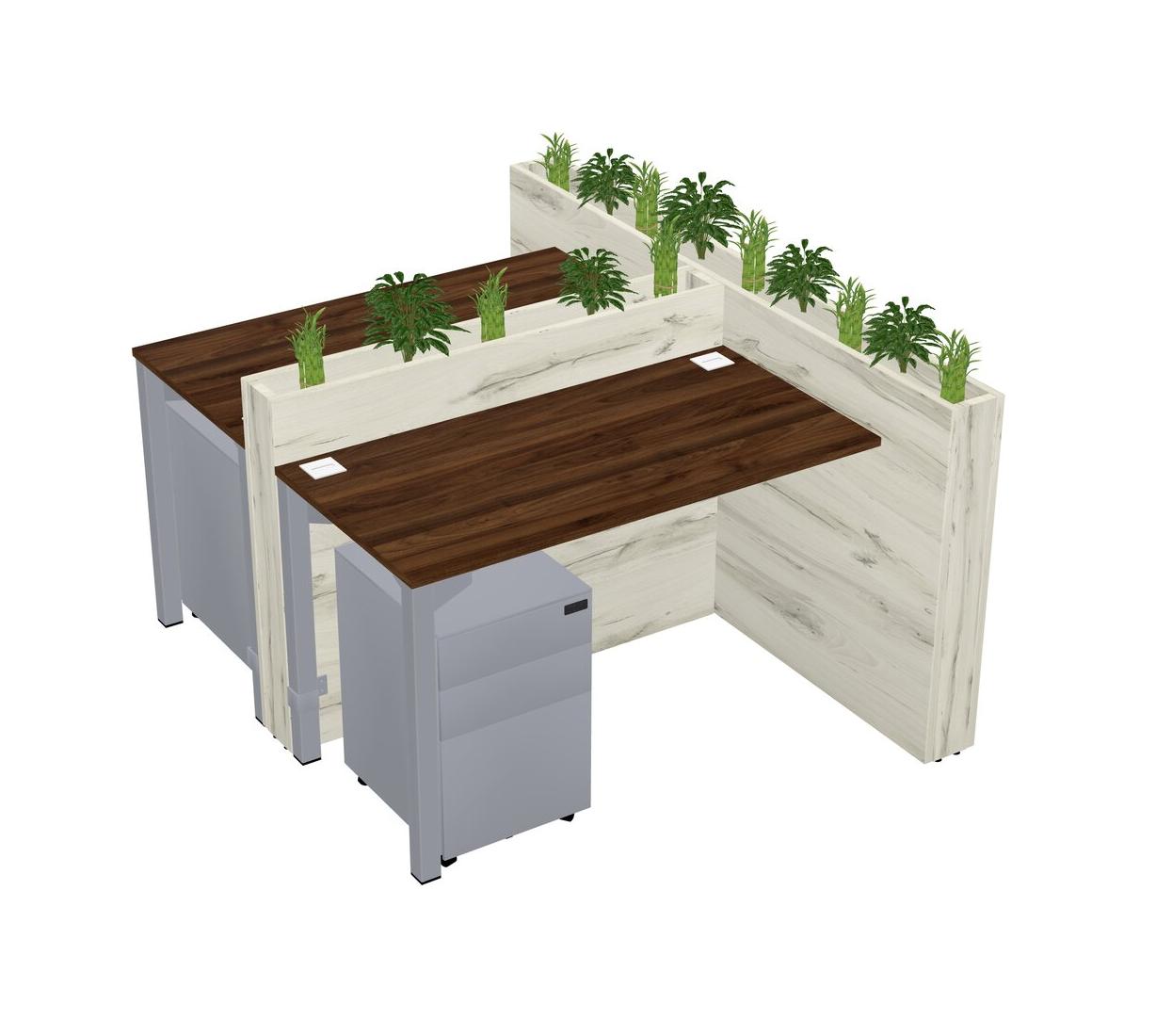Columbia Walnut Rectangular Shared Office Desk System Metal Mobile Drawers (Pots & Plants Sold Separately)