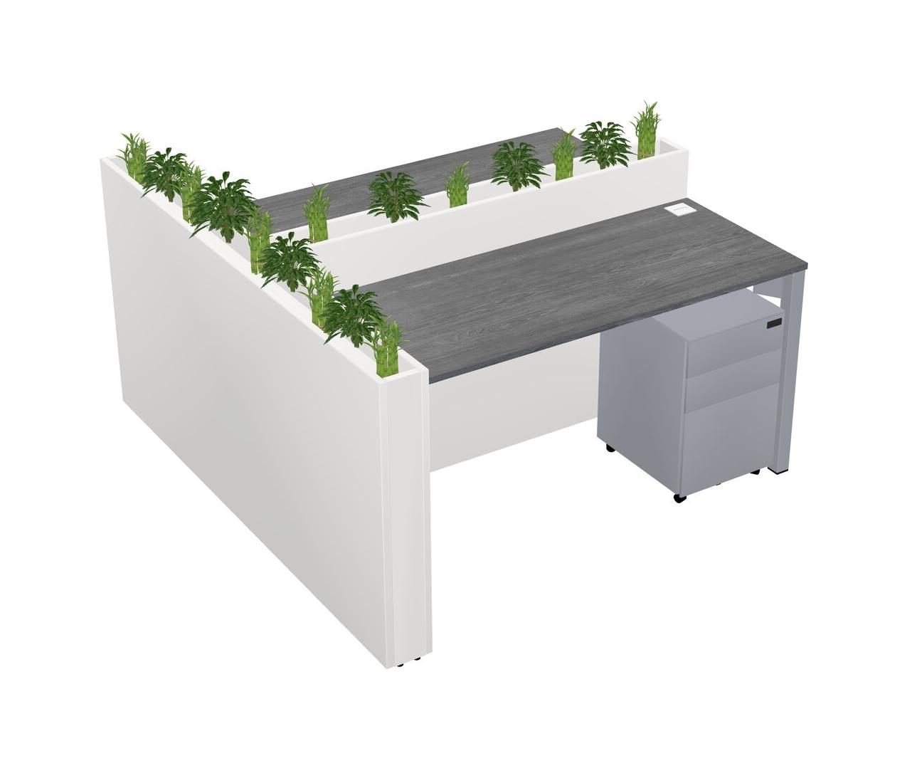 Grey Rectangular Shared Office Desk System Metal Mobile Drawers (Pots & Plants Sold Separately)