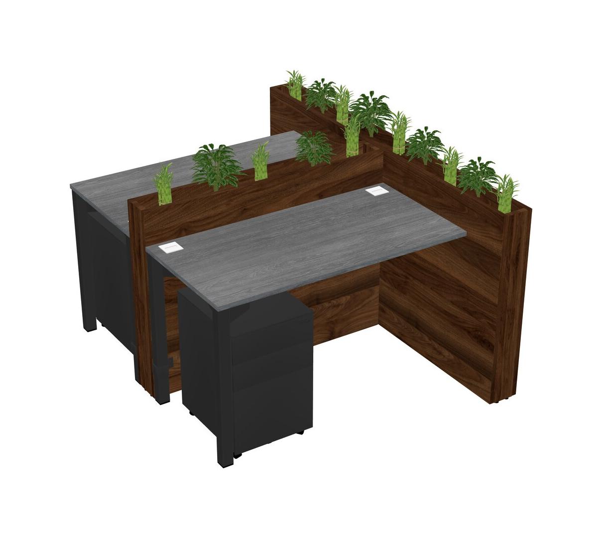 Grey Rectangular Shared Office Desk System Metal Mobile Drawers (Pots & Plants Sold Separately)
