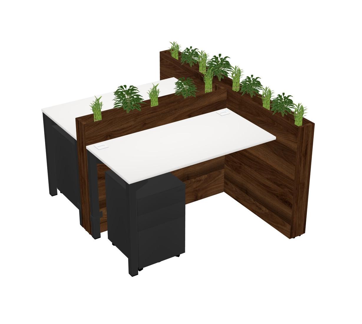 White Rectangular Shared Office Desk System Metal Mobile Drawers (Pots & Plants Sold Separately)