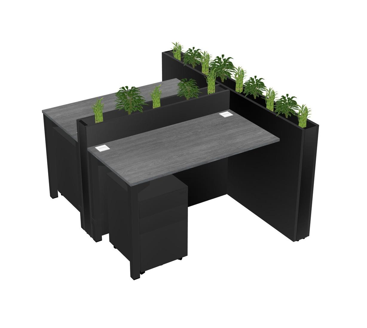 Grey Rectangular Shared Office Desk System Metal Mobile Drawers (Pots & Plants Sold Separately)