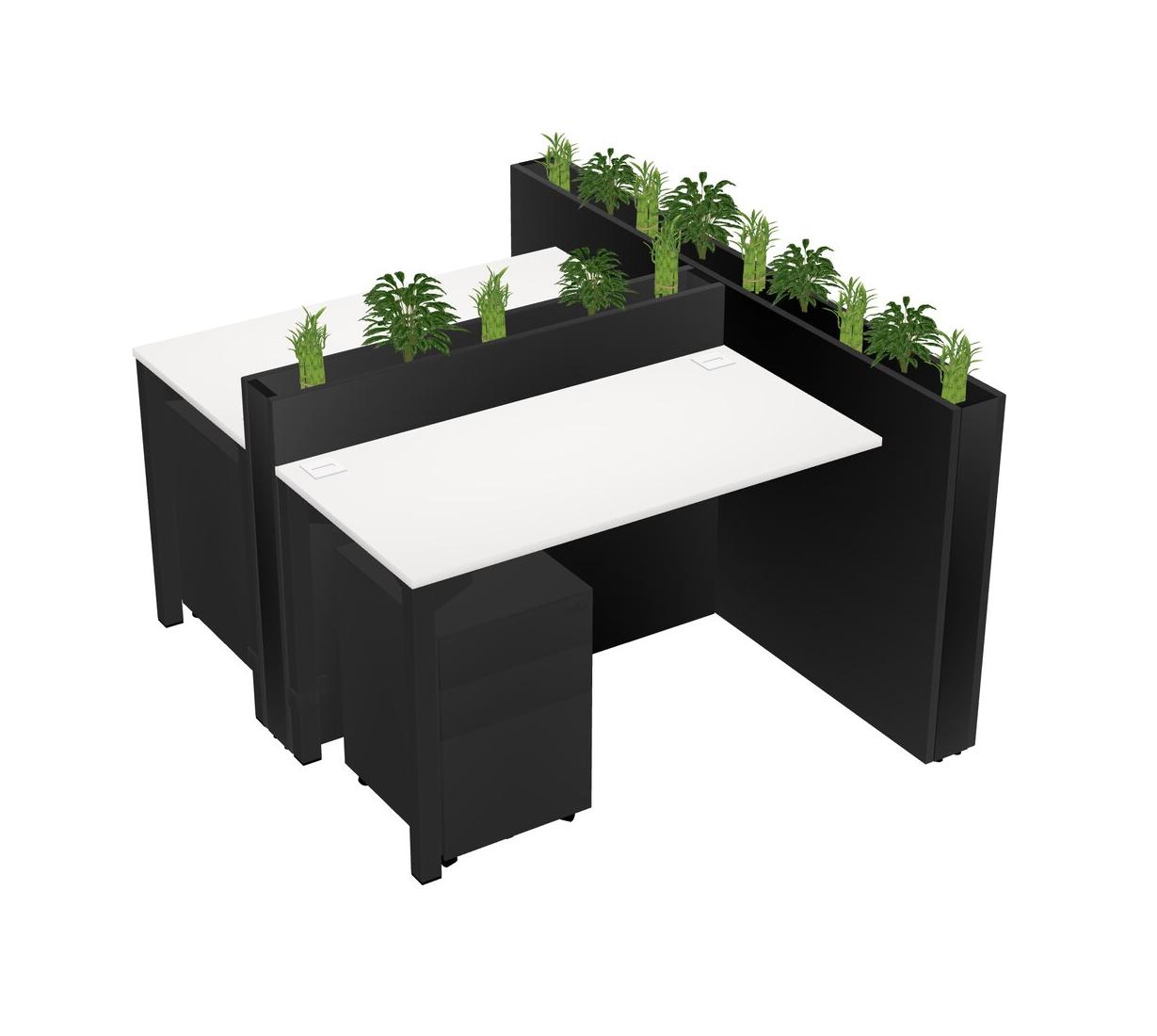White Rectangular Shared Office Desk System Metal Mobile Drawers (Pots & Plants Sold Separately)