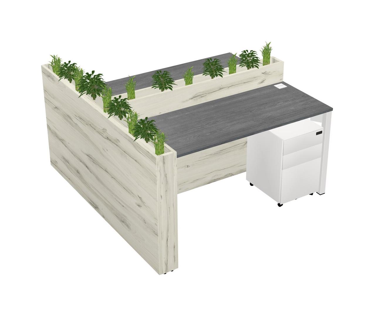 Grey Rectangular Shared Office Desk System Metal Mobile Drawers (Pots & Plants Sold Separately)