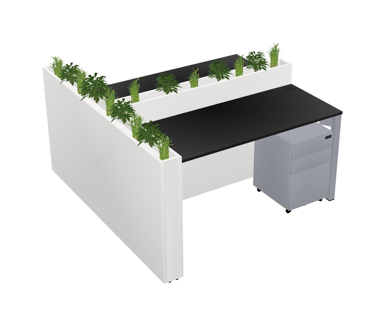 Black Rectangular Shared Office Desk System Metal Mobile Drawers (Pots & Plants Sold Separately)