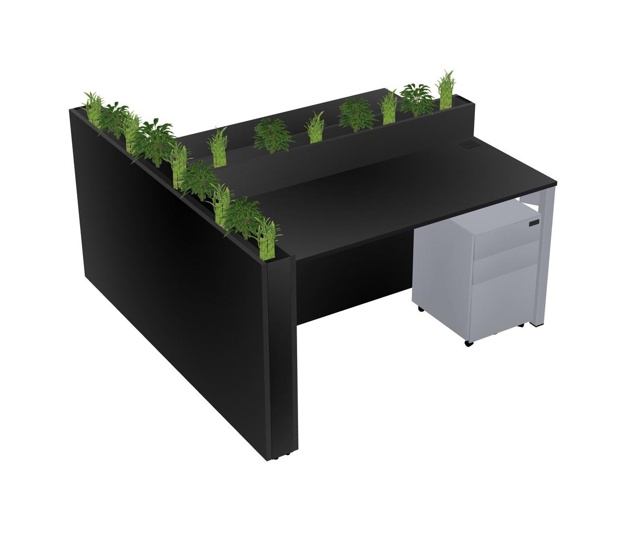 Black Rectangular Shared Office Desk System Metal Mobile Drawers (Pots & Plants Sold Separately)