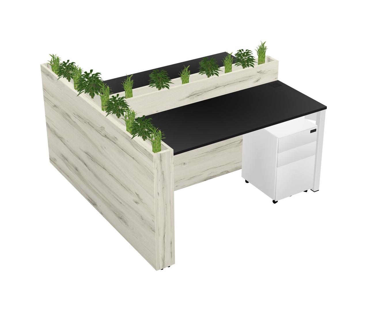 Black Rectangular Shared Office Desk System Metal Mobile Drawers (Pots & Plants Sold Separately)