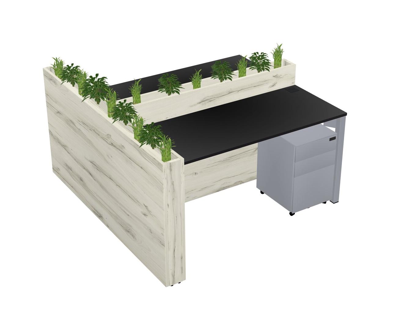 Black Rectangular Shared Office Desk System Metal Mobile Drawers (Pots & Plants Sold Separately)