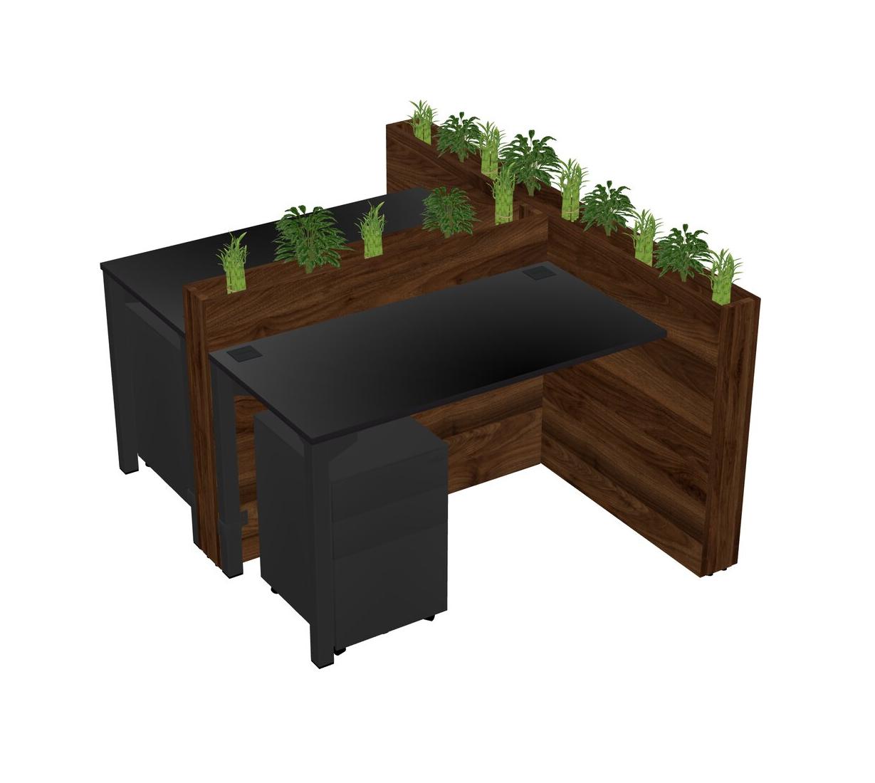 Black Rectangular Shared Office Desk System Metal Mobile Drawers (Pots & Plants Sold Separately)