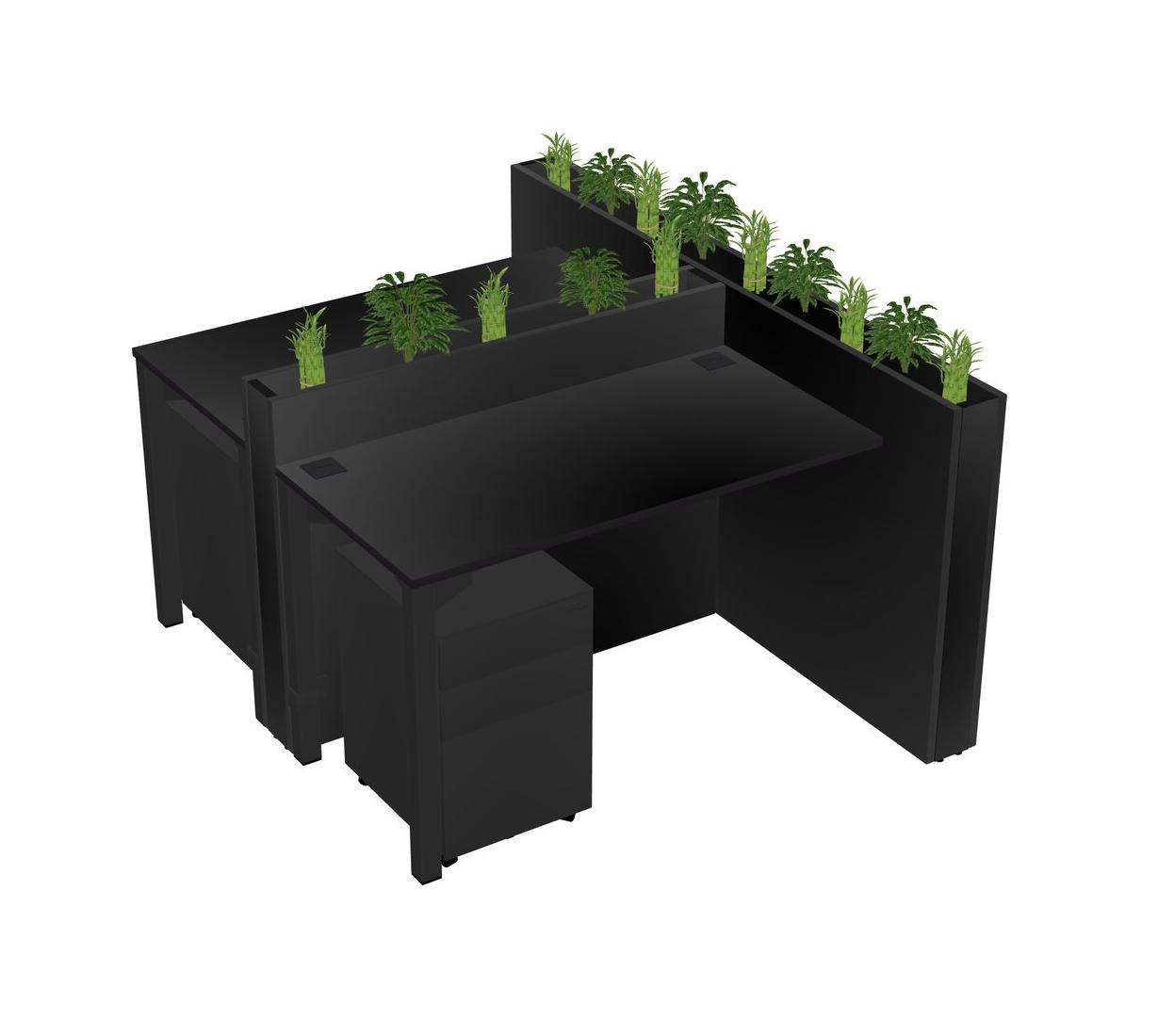 Black Rectangular Shared Office Desk System Metal Mobile Drawers (Pots & Plants Sold Separately)