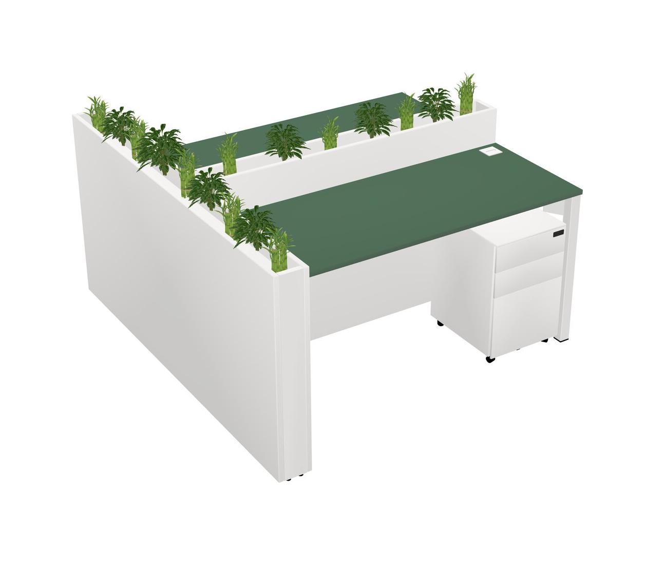 Green Rectangular Shared Office Desk System Metal Mobile Drawers (Pots & Plants Sold Separately)