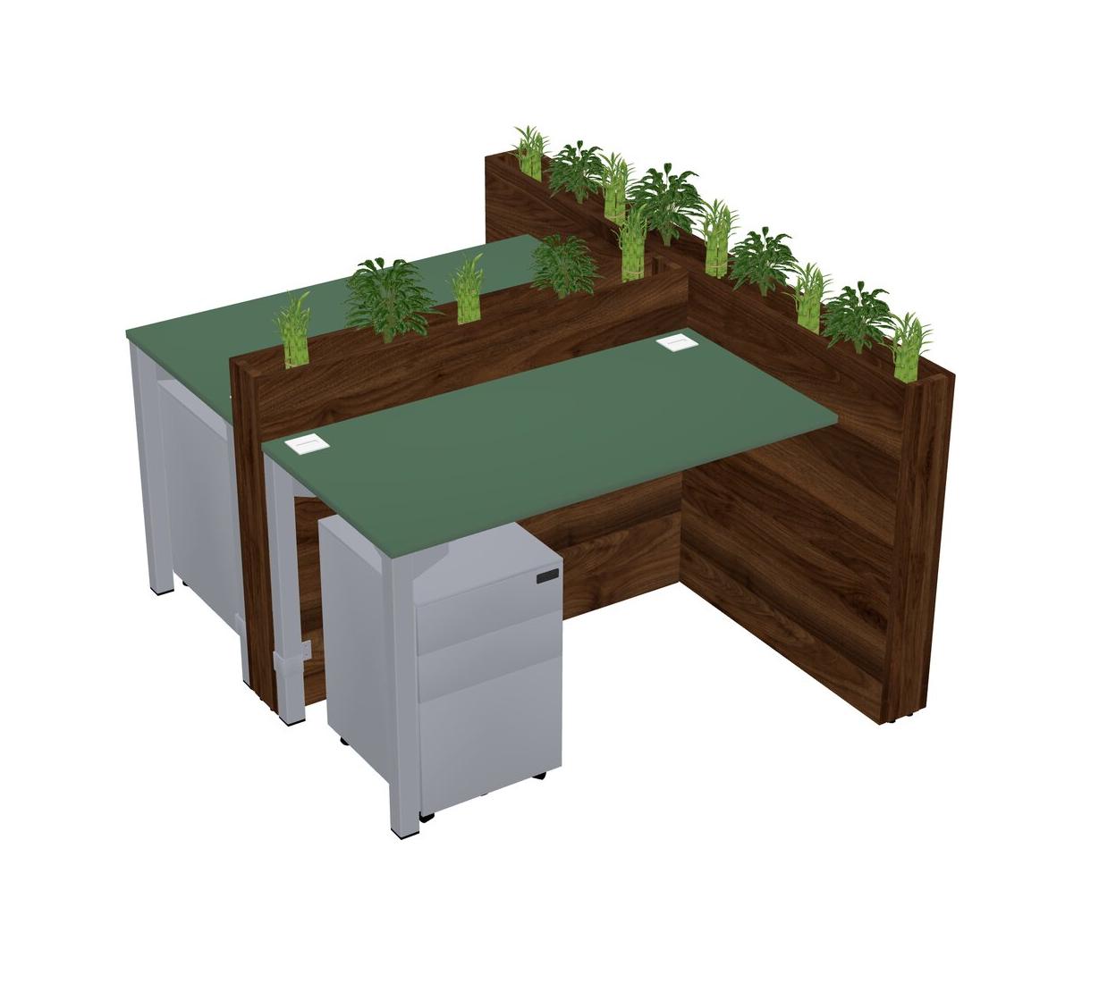 Green Rectangular Shared Office Desk System Metal Mobile Drawers (Pots & Plants Sold Separately)