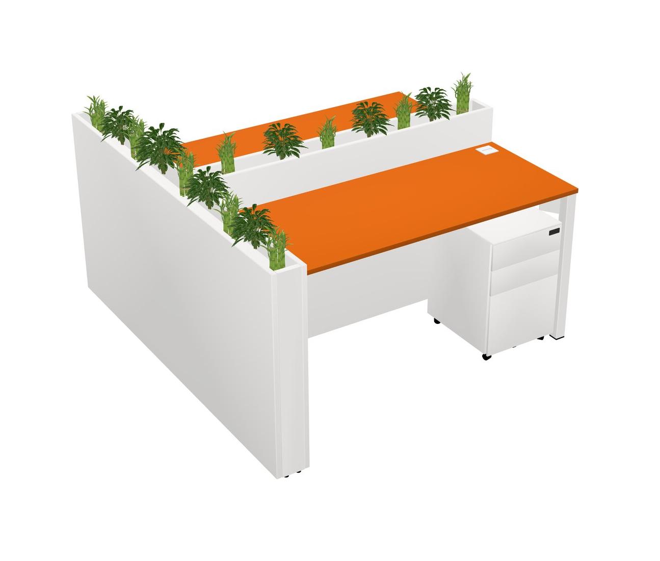 Orange Rectangular Shared Office Desk System Metal Mobile Drawers (Pots & Plants Sold Separately)