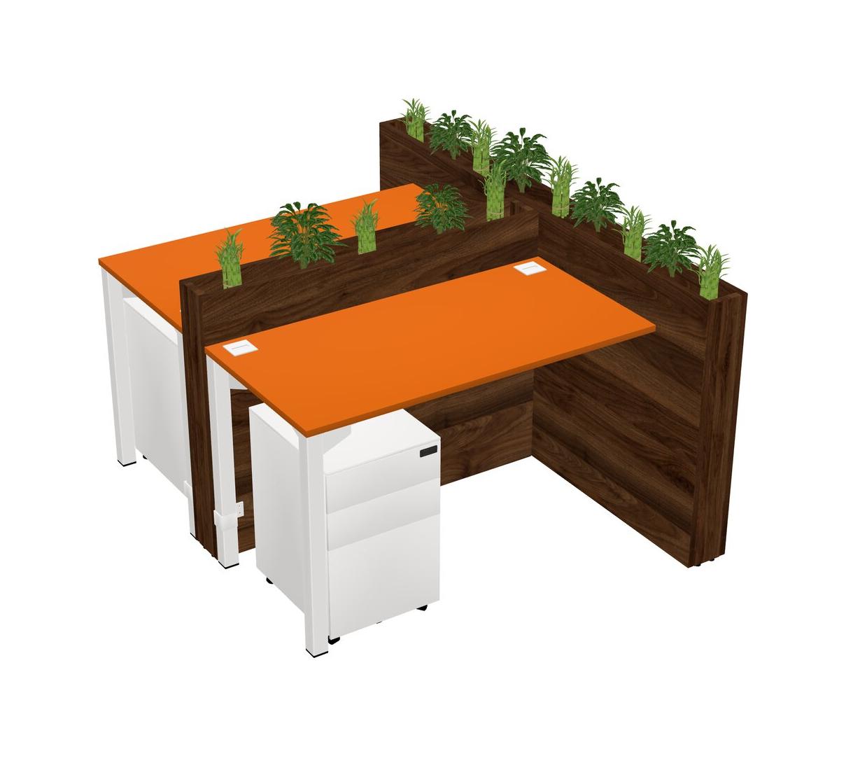 Orange Rectangular Shared Office Desk System Metal Mobile Drawers (Pots & Plants Sold Separately)