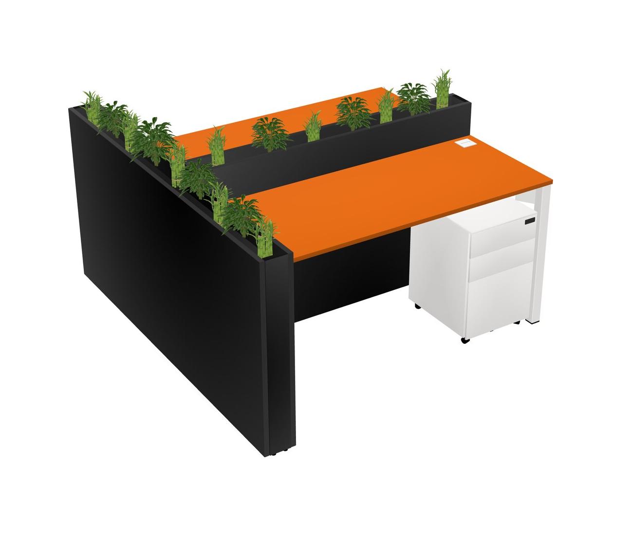 Orange Rectangular Shared Office Desk System Metal Mobile Drawers (Pots & Plants Sold Separately)