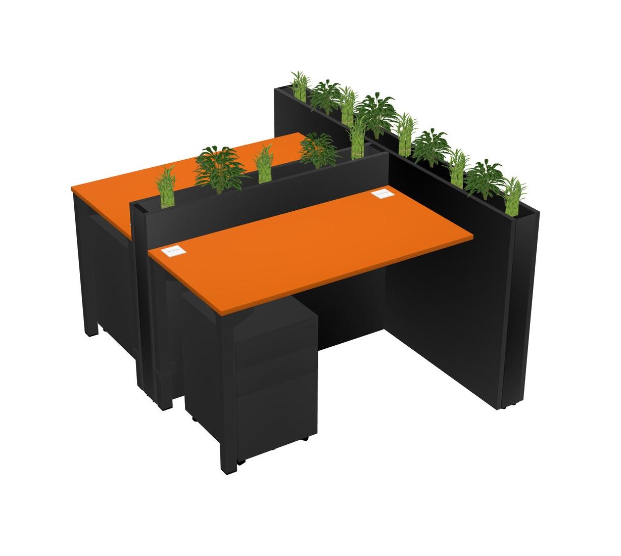 Orange Rectangular Shared Office Desk System Metal Mobile Drawers (Pots & Plants Sold Separately)