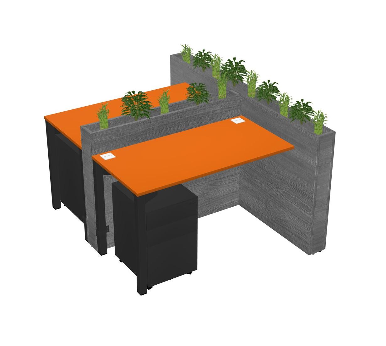 Orange Rectangular Shared Office Desk System Metal Mobile Drawers (Pots & Plants Sold Separately)