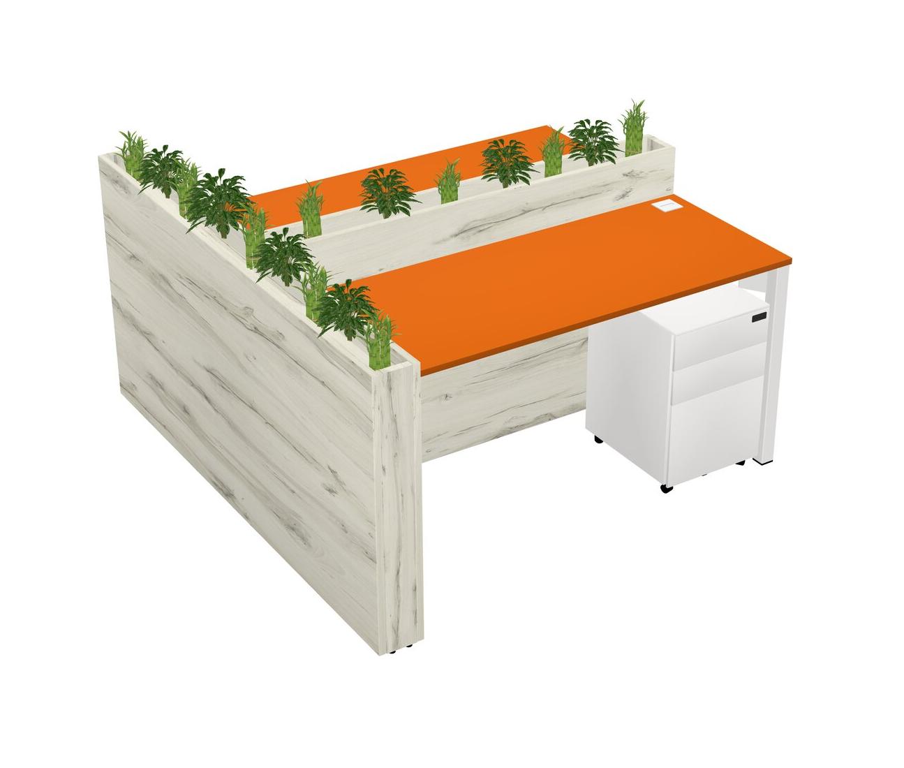 Orange Rectangular Shared Office Desk System Metal Mobile Drawers (Pots & Plants Sold Separately)