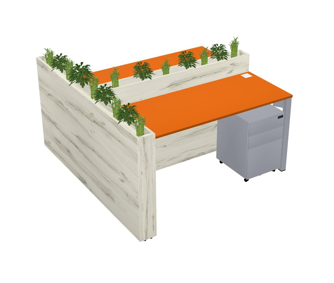 Orange Rectangular Shared Office Desk System Metal Mobile Drawers (Pots & Plants Sold Separately)