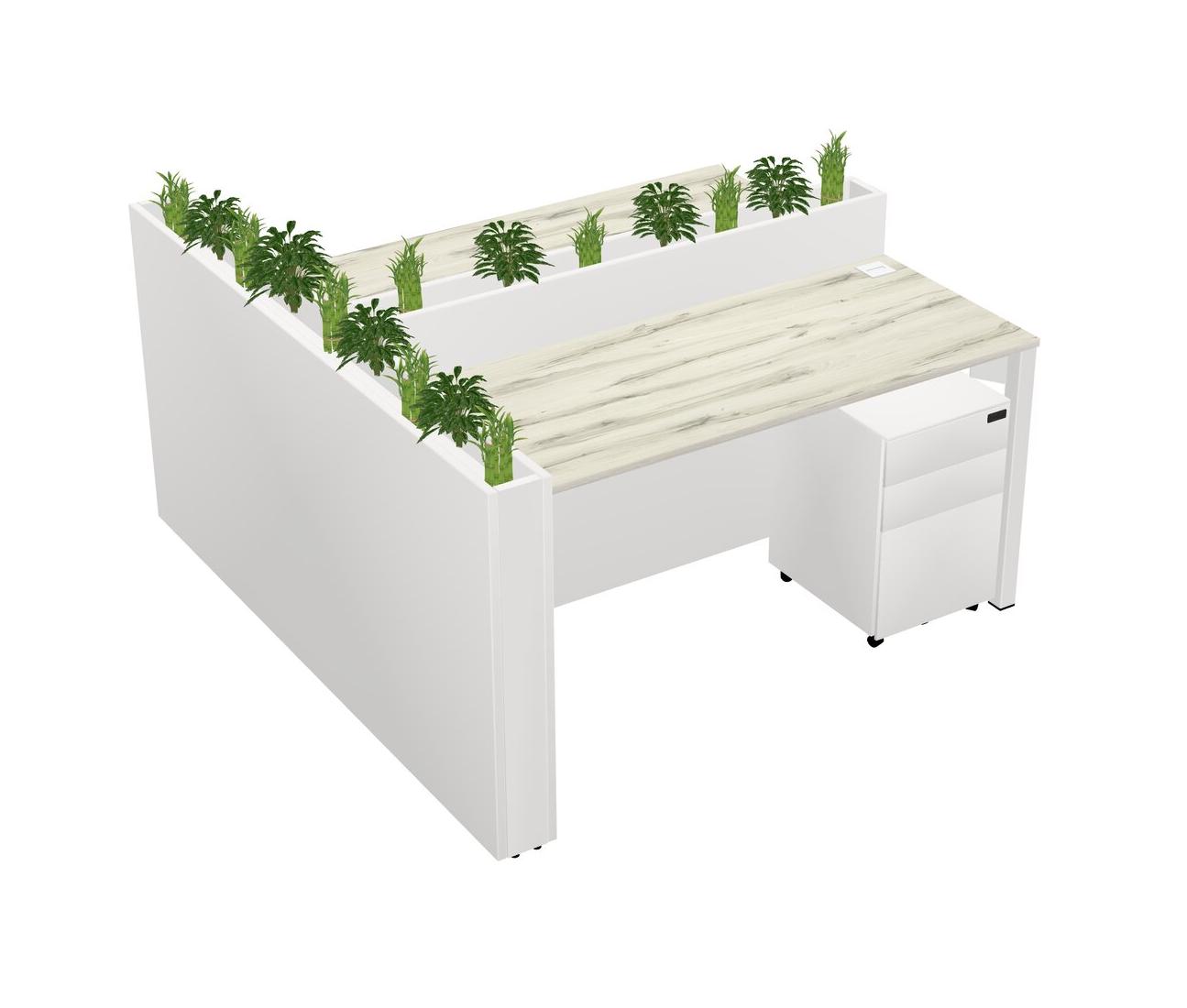 Heinne Holz Rectangular Shared Office Desk System Metal Mobile Drawers (Pots & Plants Sold Separately)