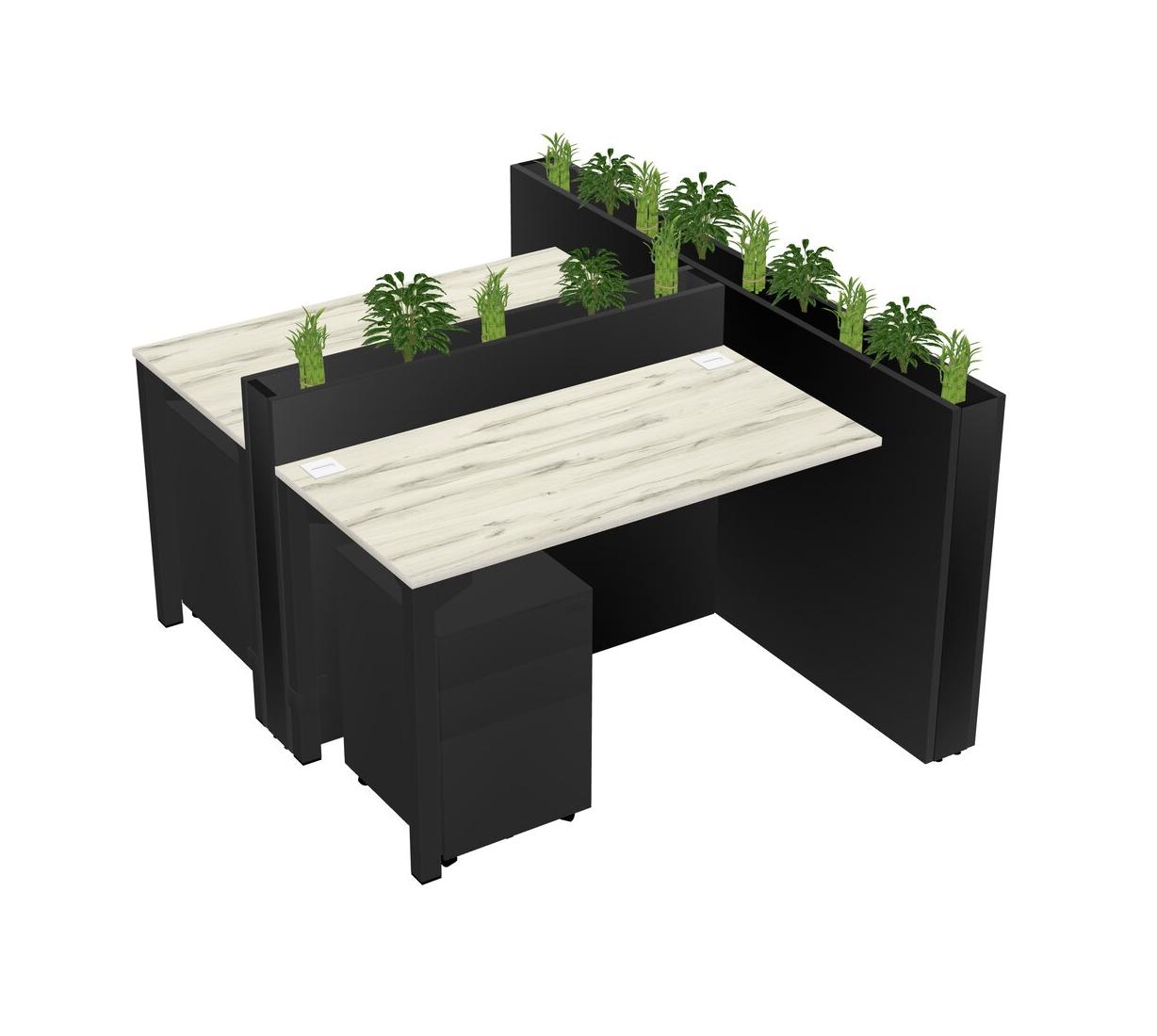 Heinne Holz Rectangular Shared Office Desk System Metal Mobile Drawers (Pots & Plants Sold Separately)