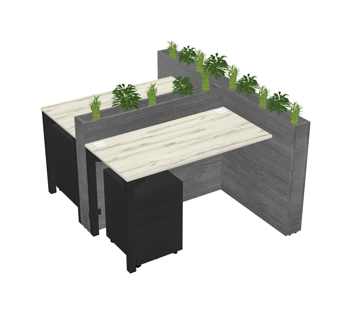 Heinne Holz Rectangular Shared Office Desk System Metal Mobile Drawers (Pots & Plants Sold Separately)