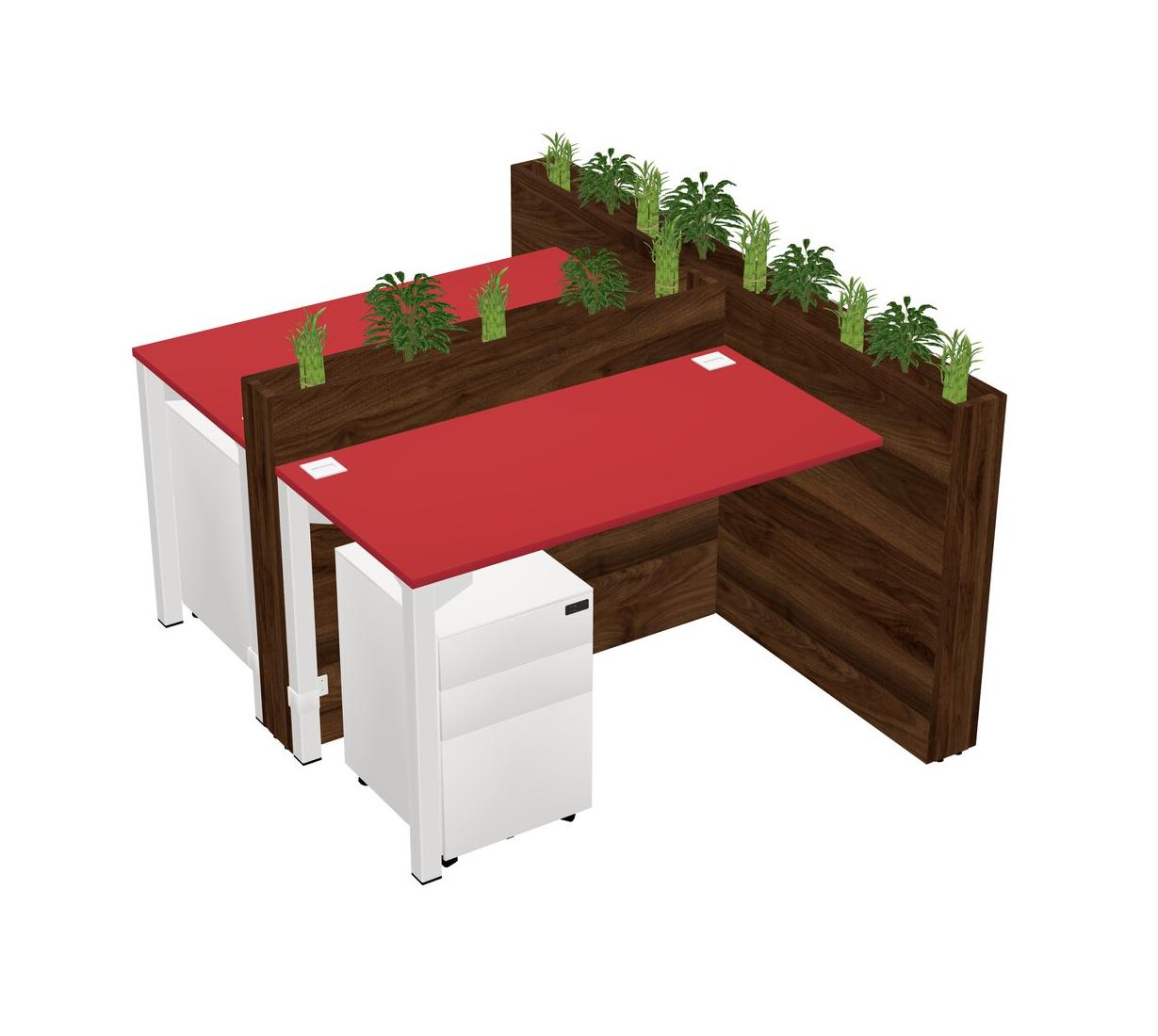 Prism Red Rectangular Shared Office Desk System Metal Mobile Drawers (Pots & Plants Sold Separately)