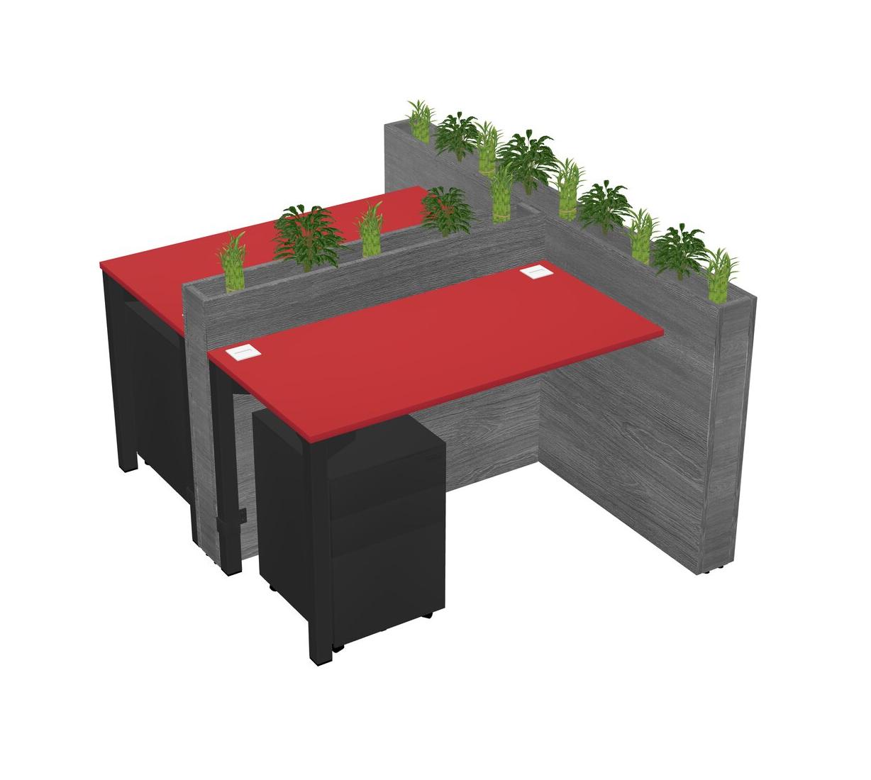 Prism Red Rectangular Shared Office Desk System Metal Mobile Drawers (Pots & Plants Sold Separately)