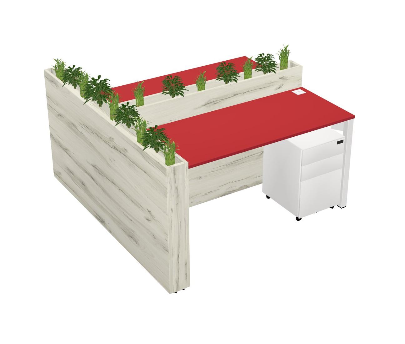 Prism Red Rectangular Shared Office Desk System Metal Mobile Drawers (Pots & Plants Sold Separately)