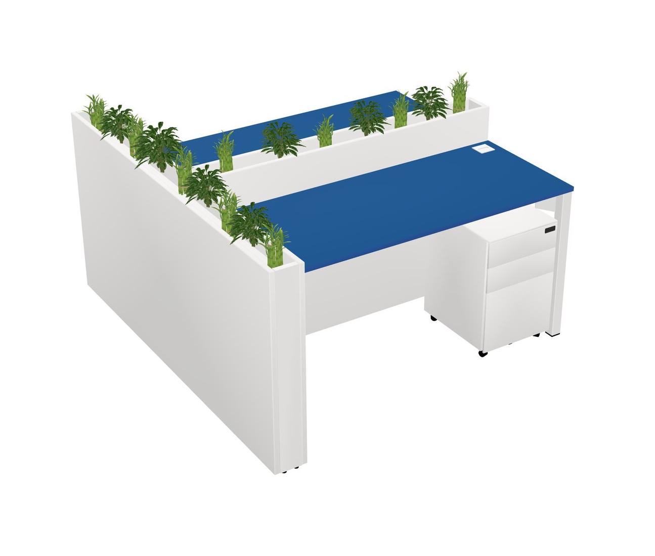 Prism Blue Rectangular Shared Office Desk System Metal Mobile Drawers (Pots & Plants Sold Separately)