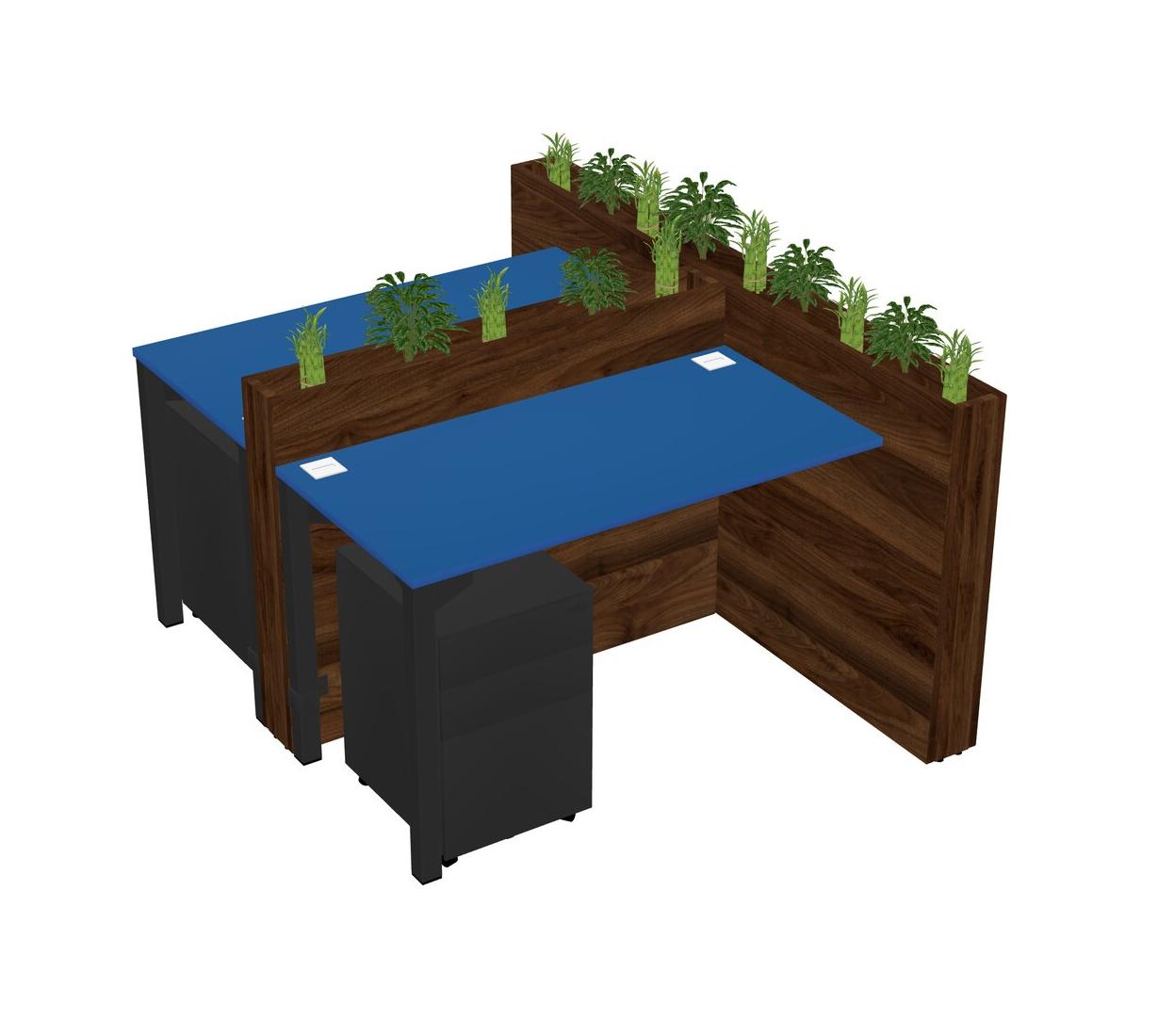 Prism Blue Rectangular Shared Office Desk System Metal Mobile Drawers (Pots & Plants Sold Separately)
