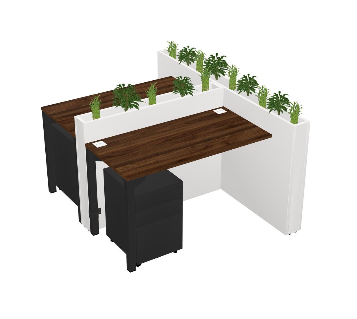 Columbia Walnut Rectangular Shared Office Desk System Metal Mobile Drawers (Pots & Plants Sold Separately)