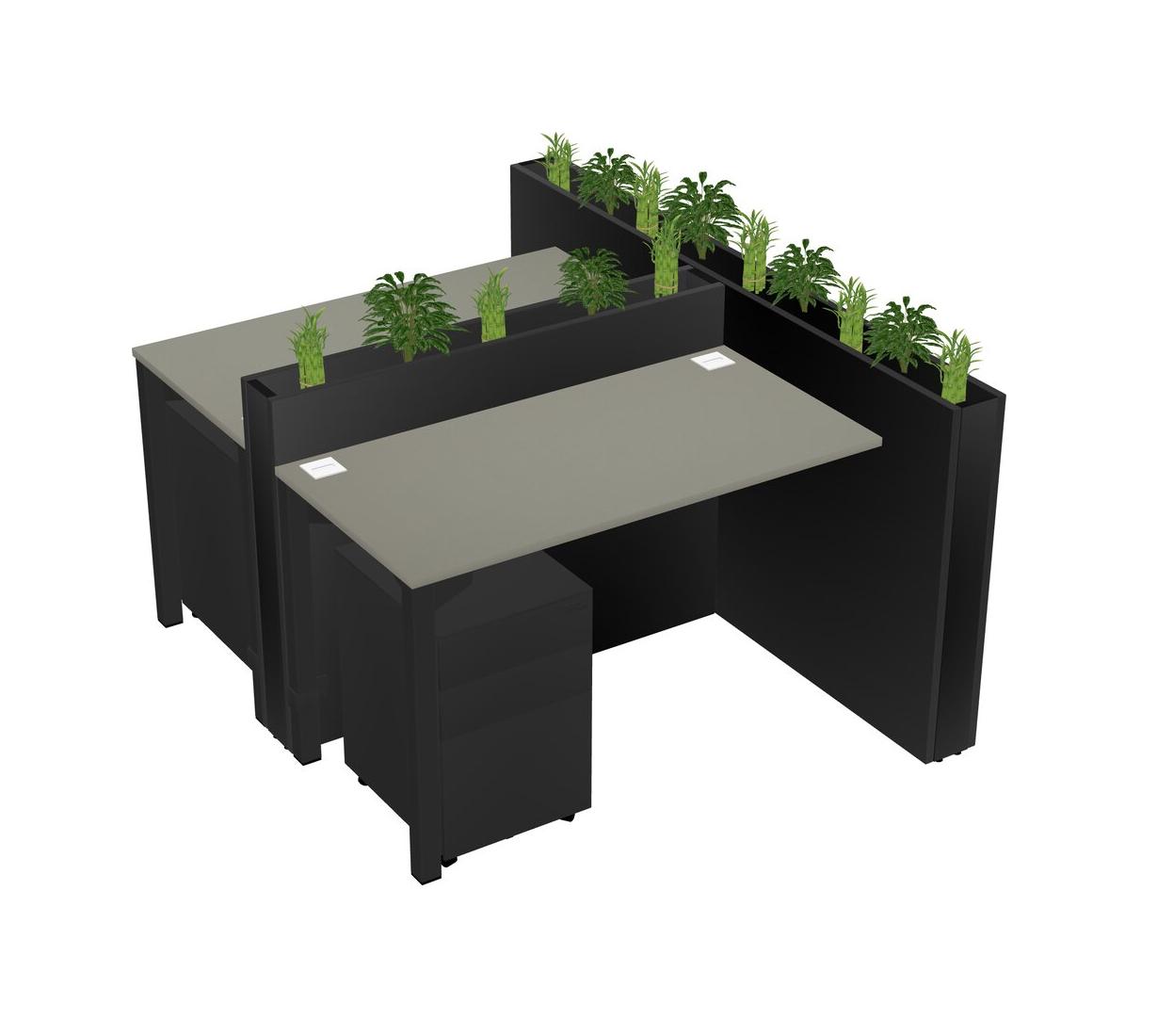 Grey Shadows Rectangular Shared Office Desk System Metal Mobile Drawers (Pots & Plants Sold Separately)