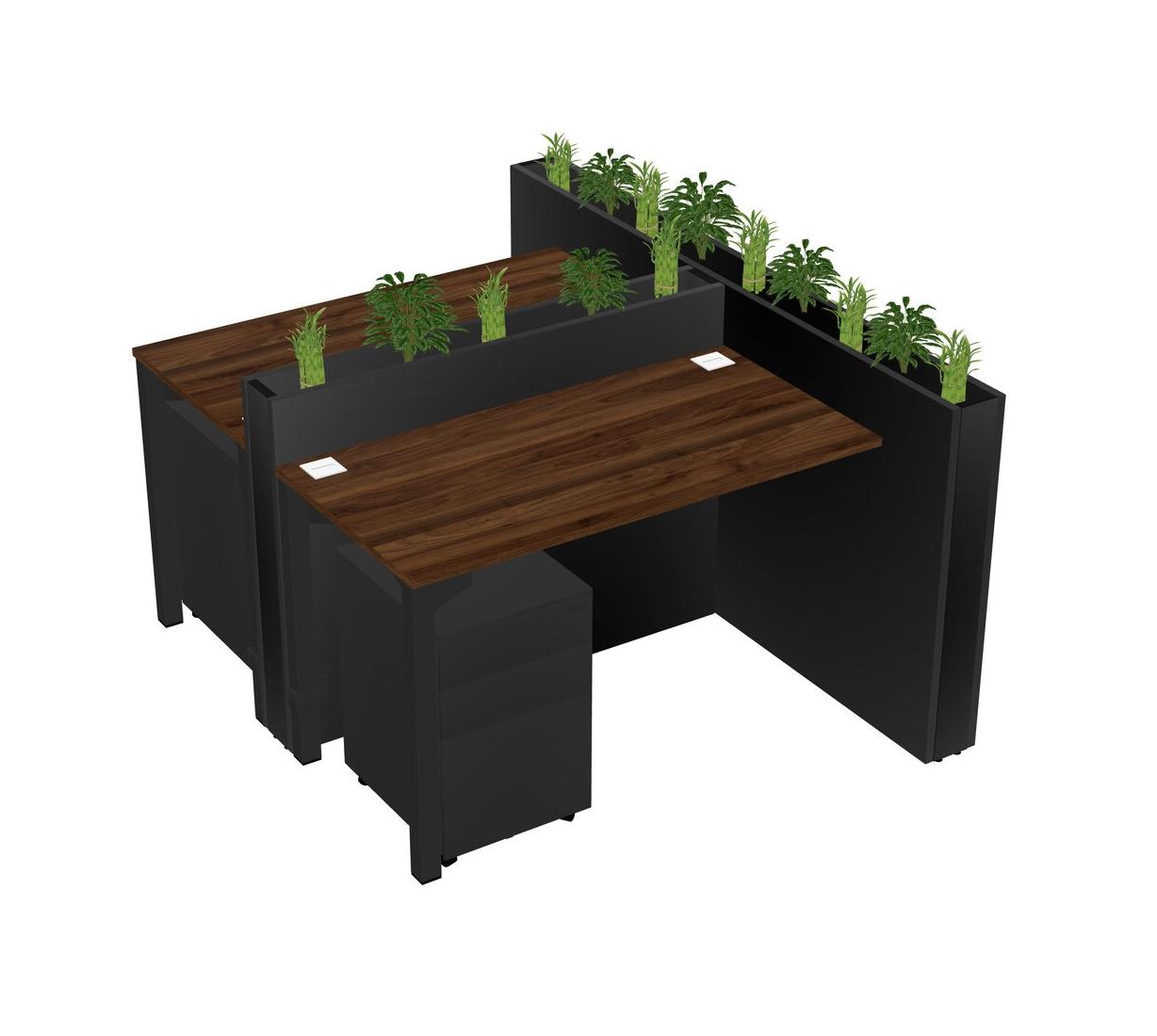 Columbia Walnut Rectangular Shared Office Desk System Metal Mobile Drawers (Pots & Plants Sold Separately)