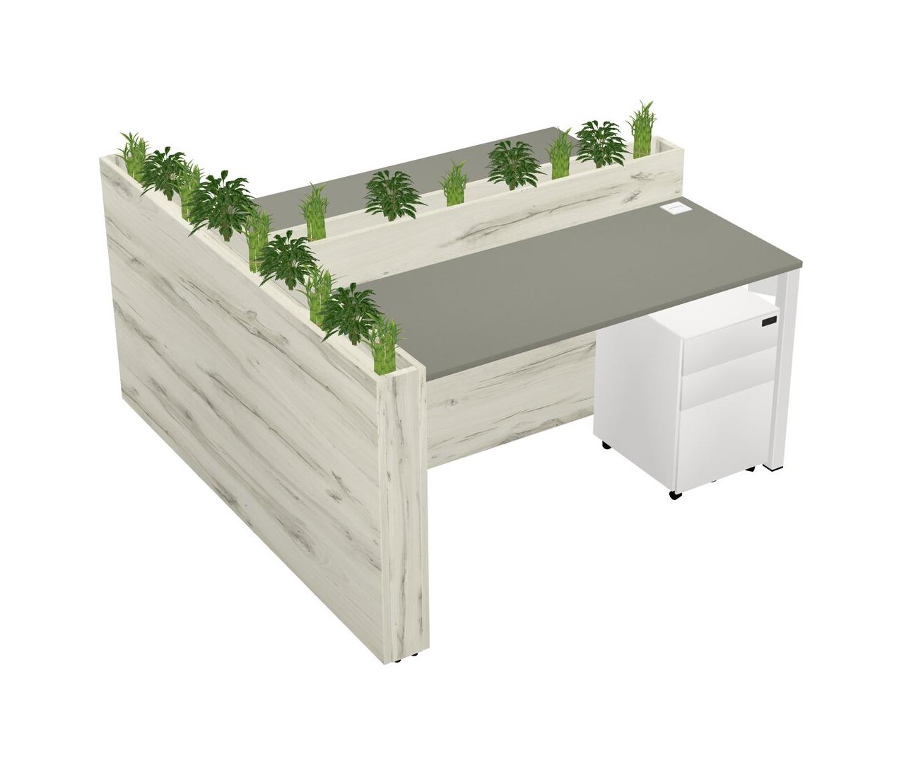 Grey Shadows Rectangular Shared Office Desk System Metal Mobile Drawers (Pots & Plants Sold Separately)