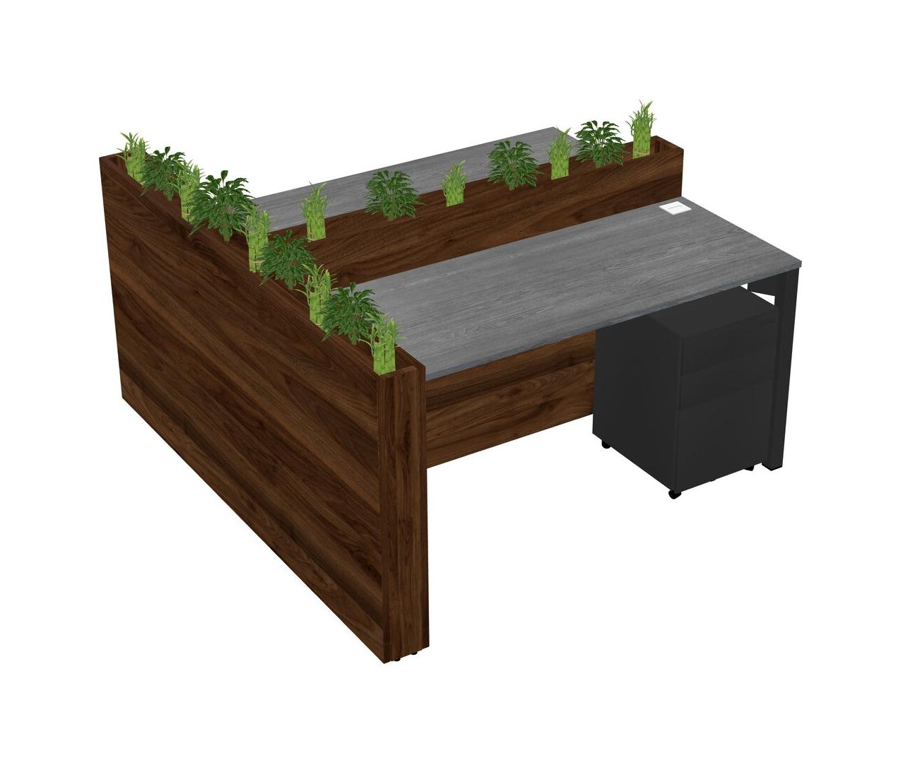 Grey Rectangular Shared Office Desk System Metal Mobile Drawers (Pots & Plants Sold Separately)