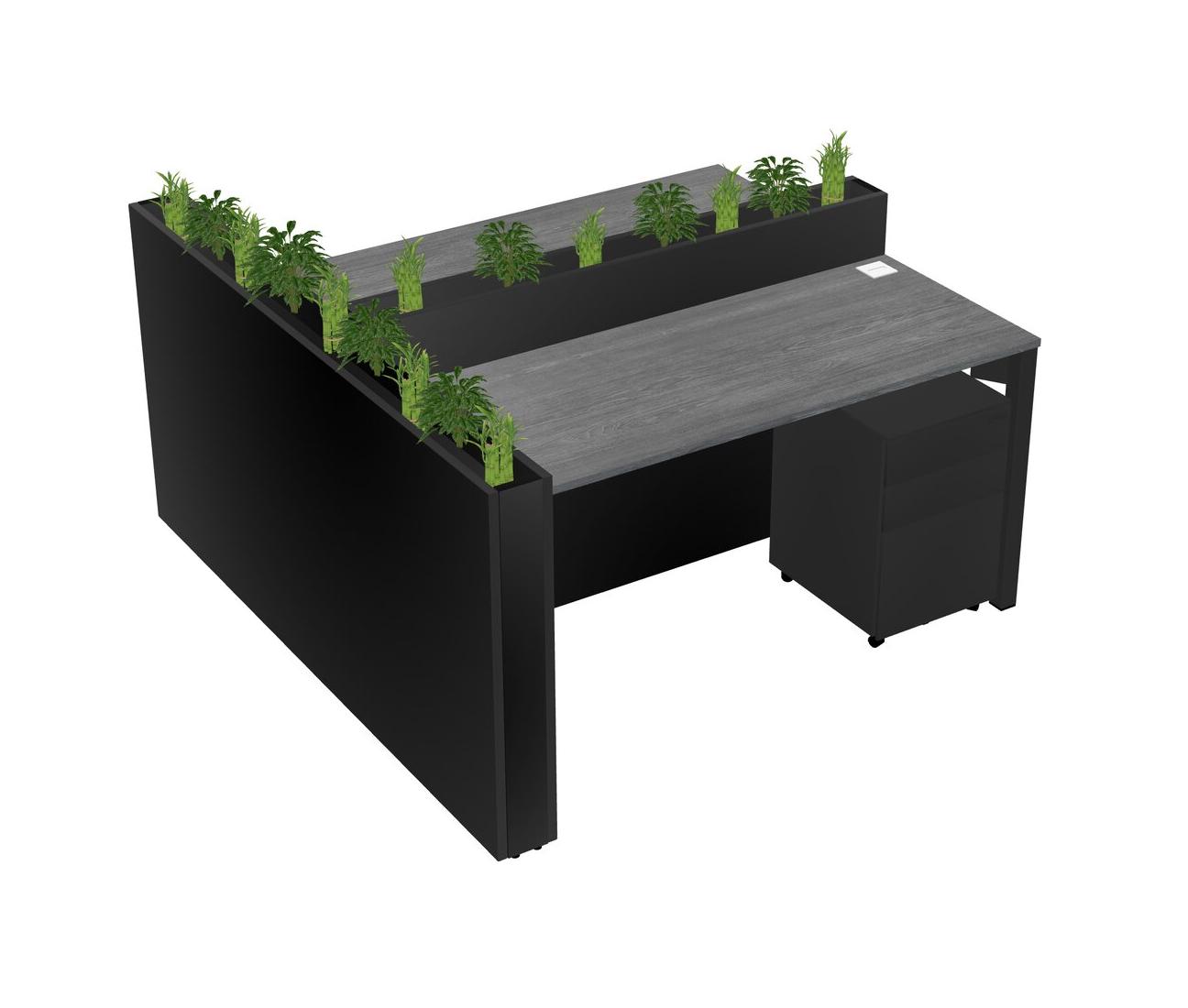 Grey Rectangular Shared Office Desk System Metal Mobile Drawers (Pots & Plants Sold Separately)