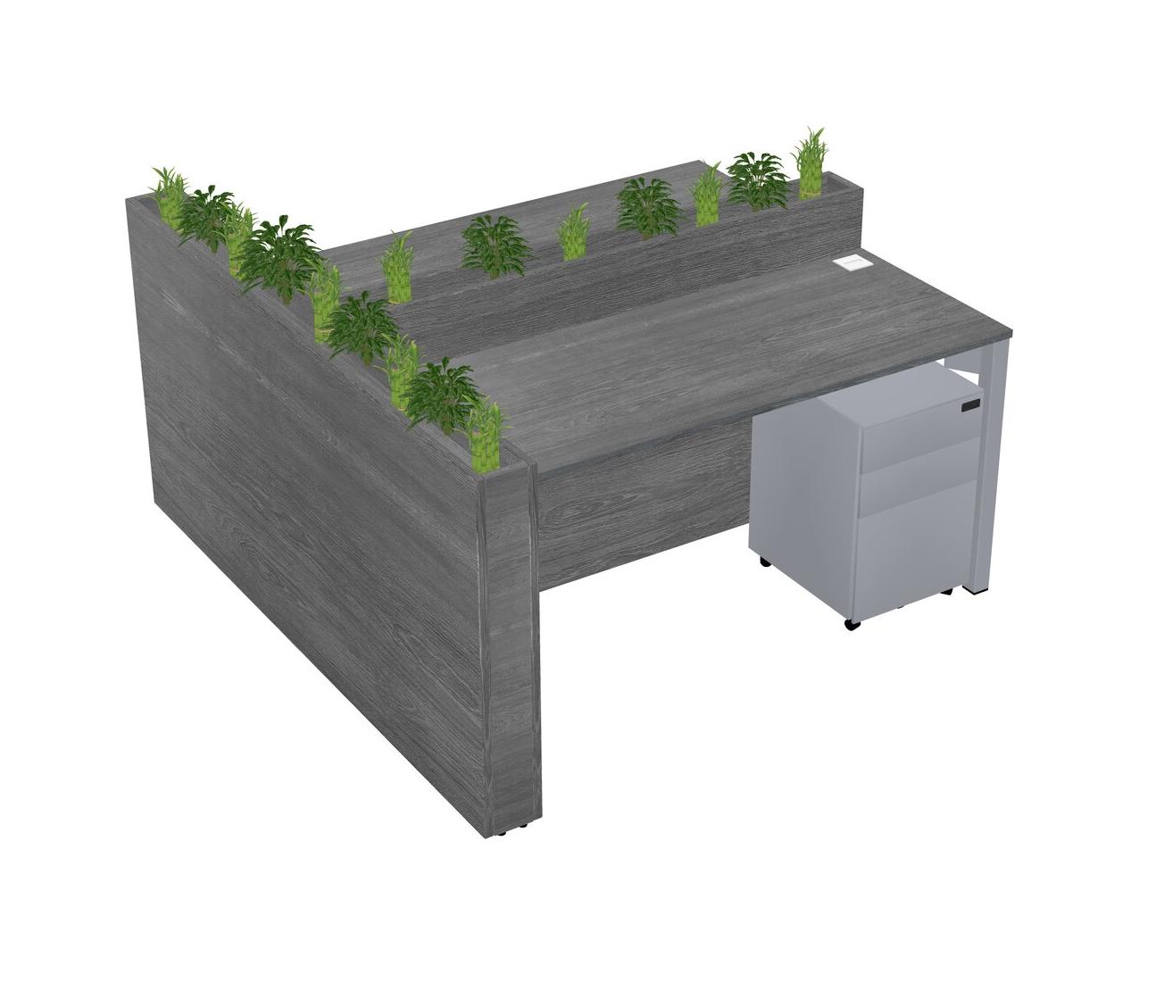 Grey Rectangular Shared Office Desk System Metal Mobile Drawers (Pots & Plants Sold Separately)