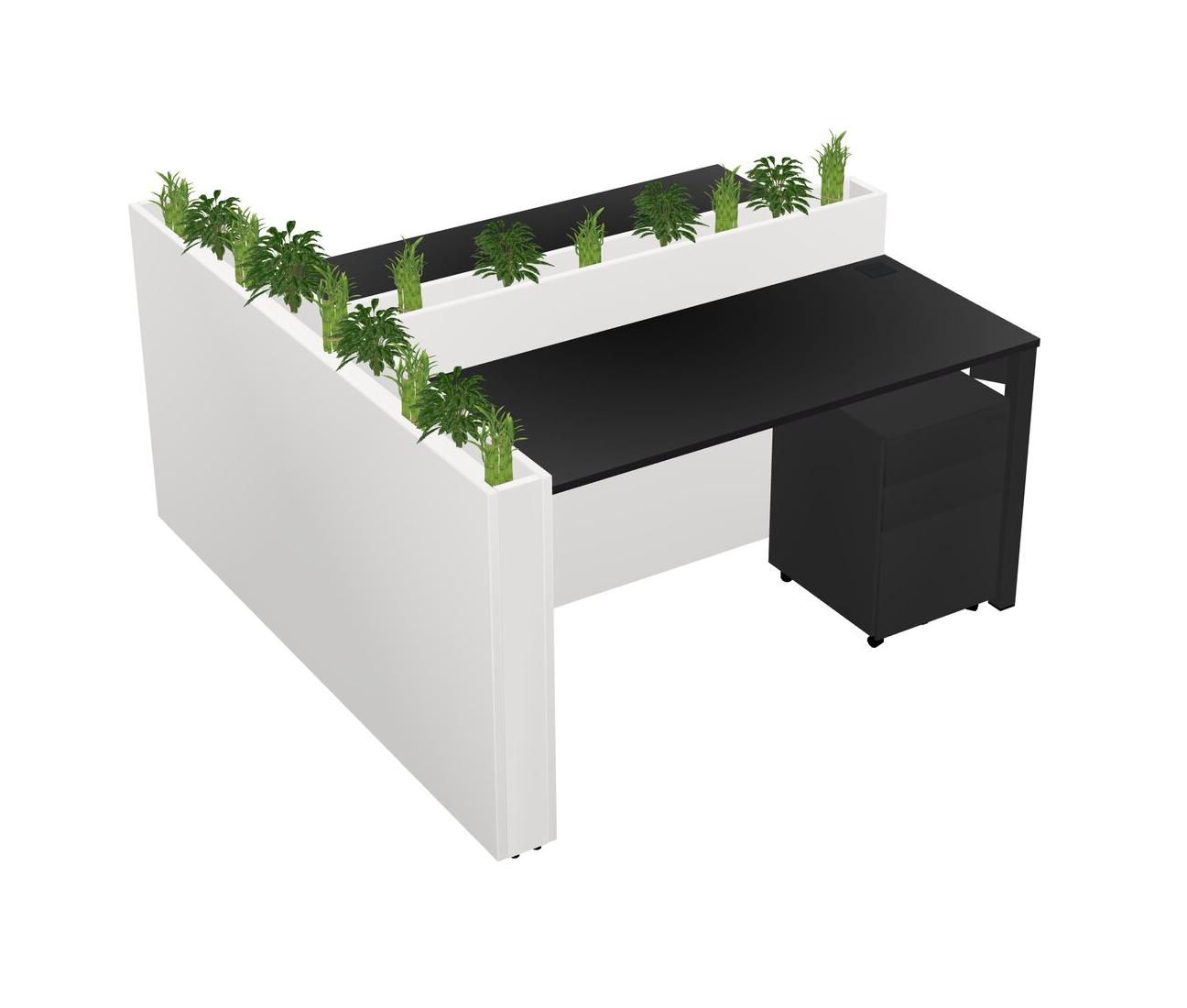 Black Rectangular Shared Office Desk System Metal Mobile Drawers (Pots & Plants Sold Separately)