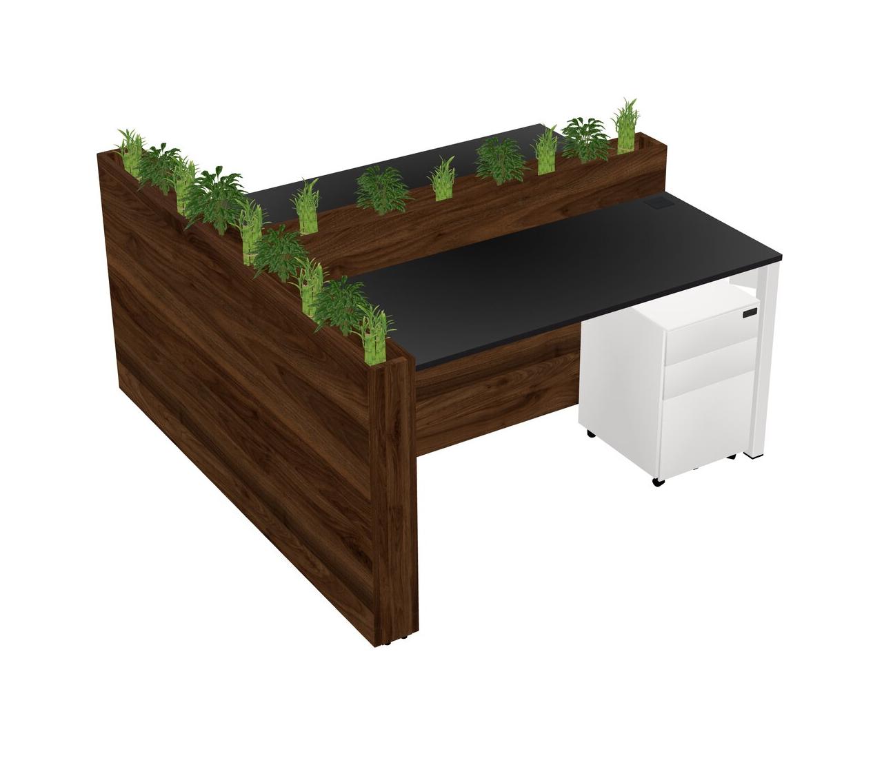 Black Rectangular Shared Office Desk System Metal Mobile Drawers (Pots & Plants Sold Separately)