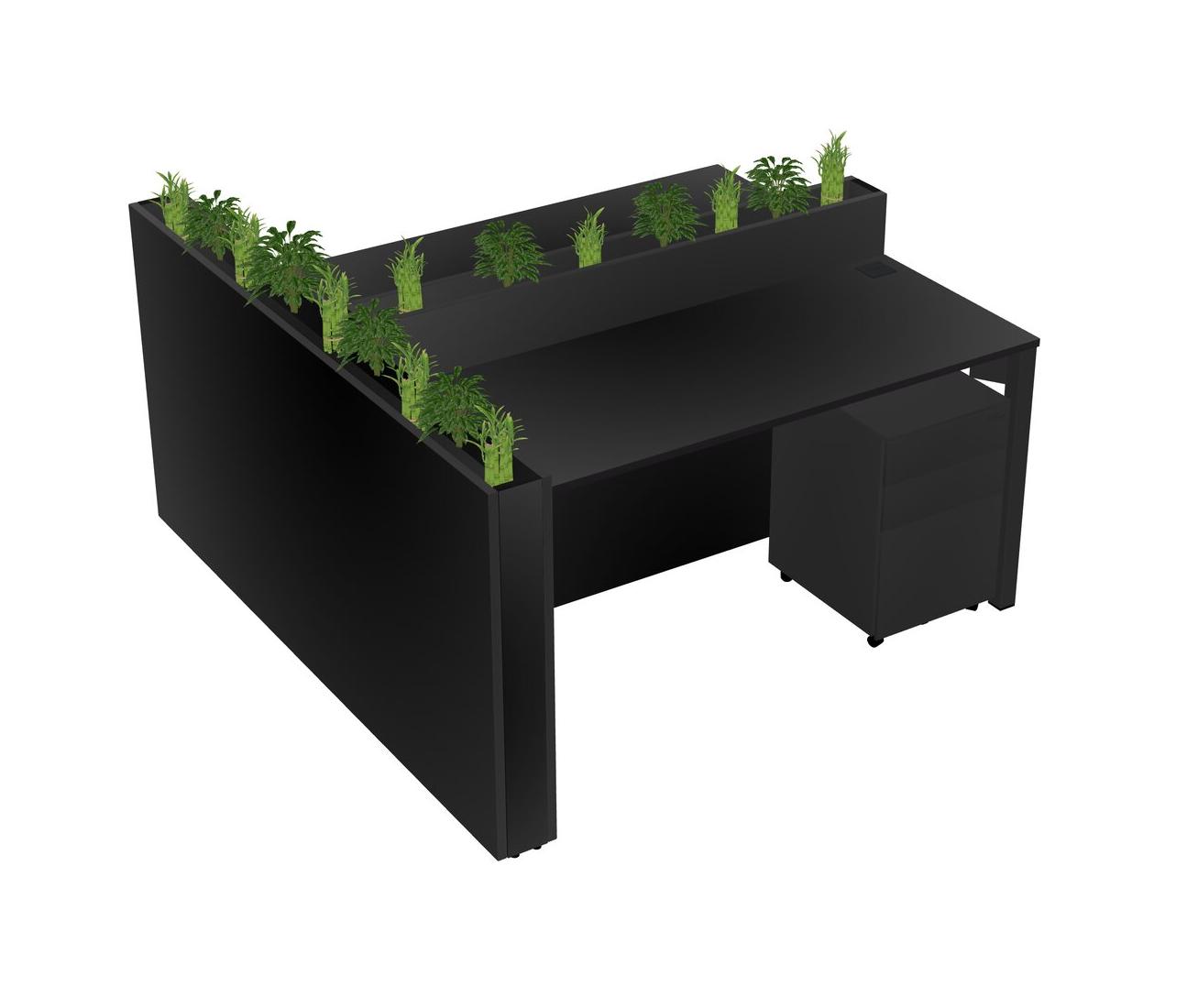 Black Rectangular Shared Office Desk System Metal Mobile Drawers (Pots & Plants Sold Separately)