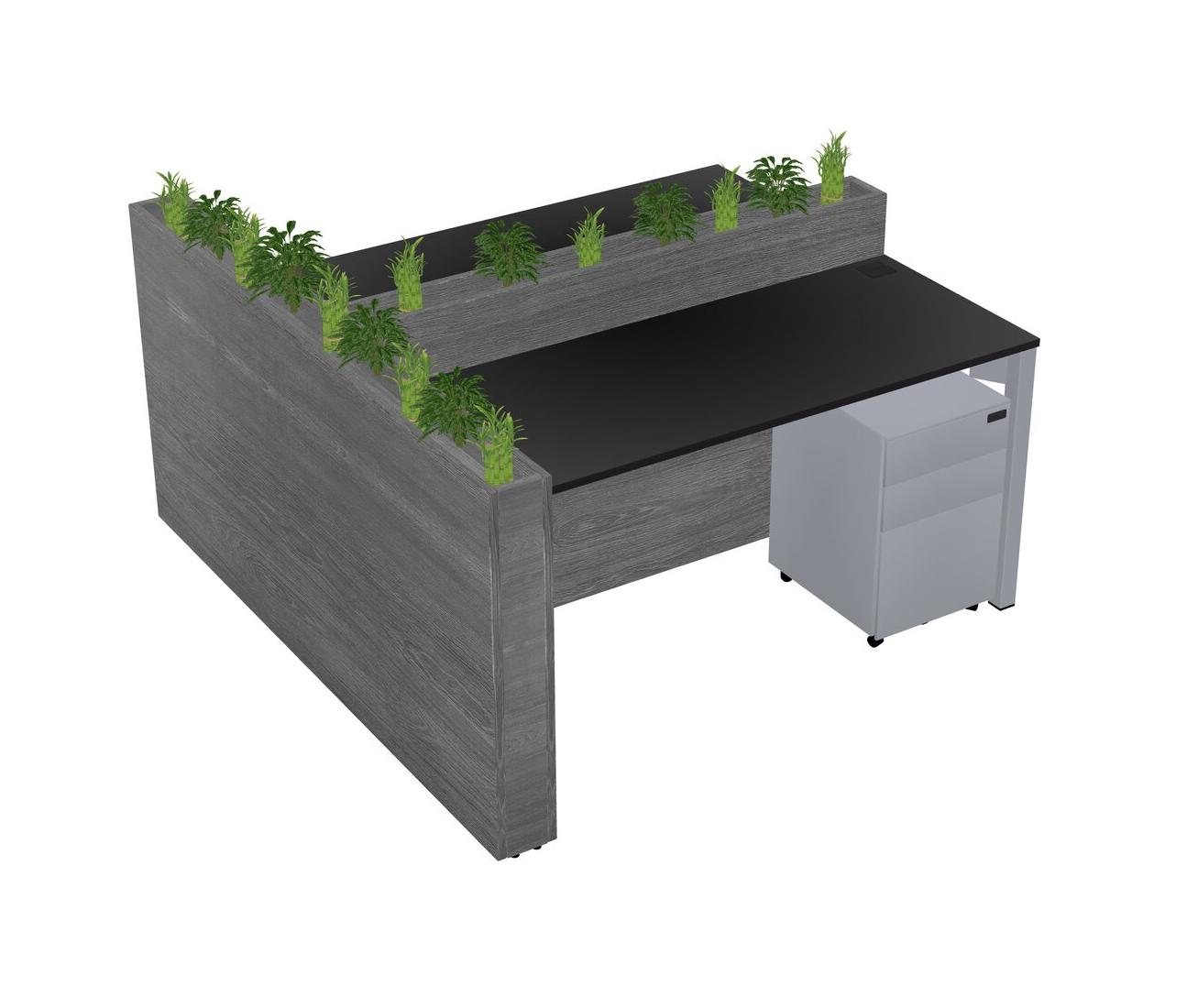 Black Rectangular Shared Office Desk System Metal Mobile Drawers (Pots & Plants Sold Separately)