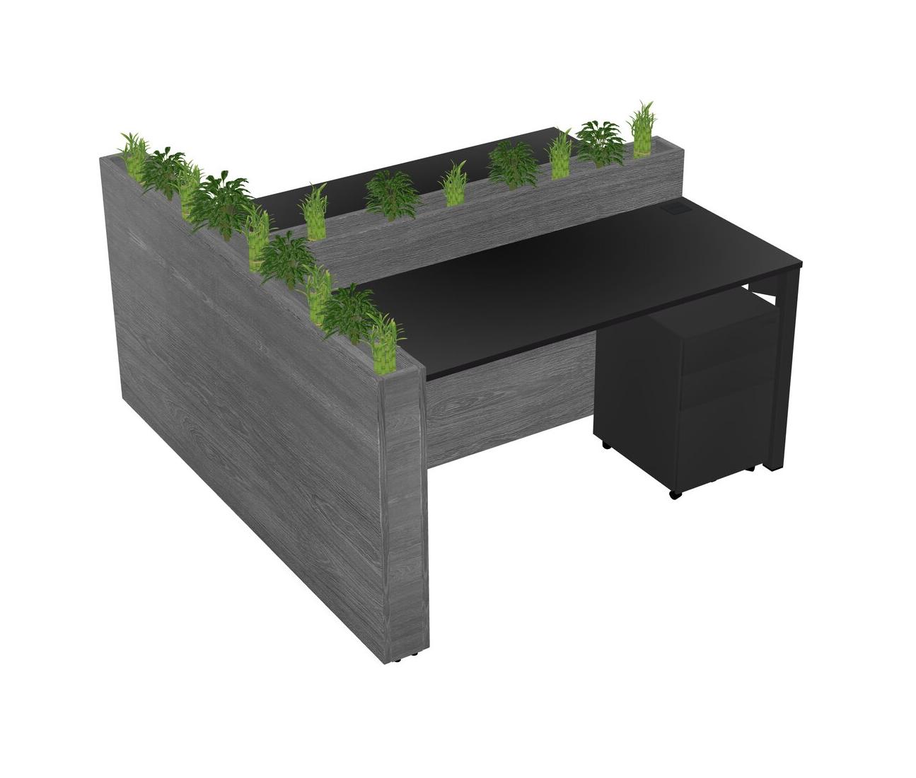Black Rectangular Shared Office Desk System Metal Mobile Drawers (Pots & Plants Sold Separately)