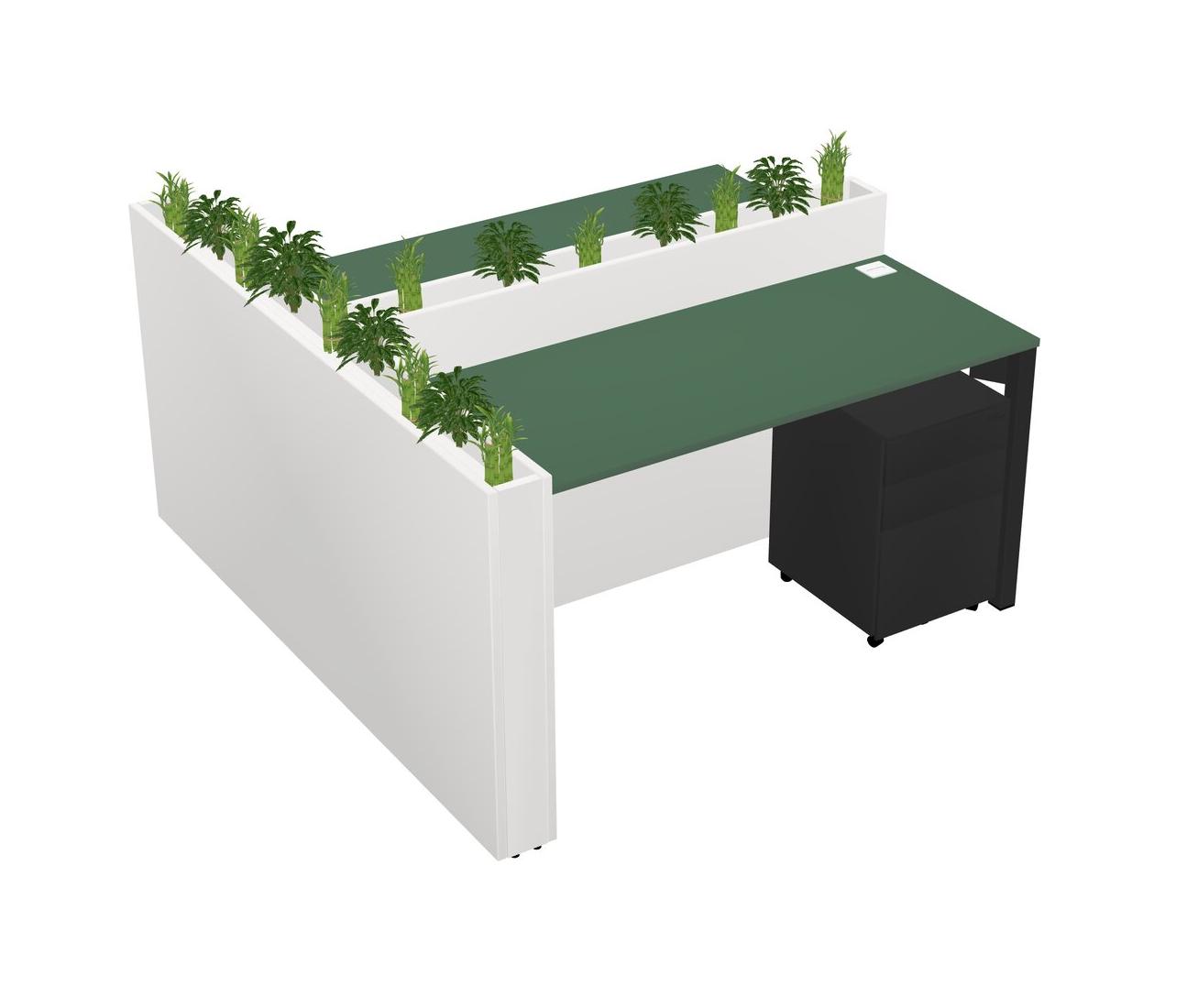 Green Rectangular Shared Office Desk System Metal Mobile Drawers (Pots & Plants Sold Separately)