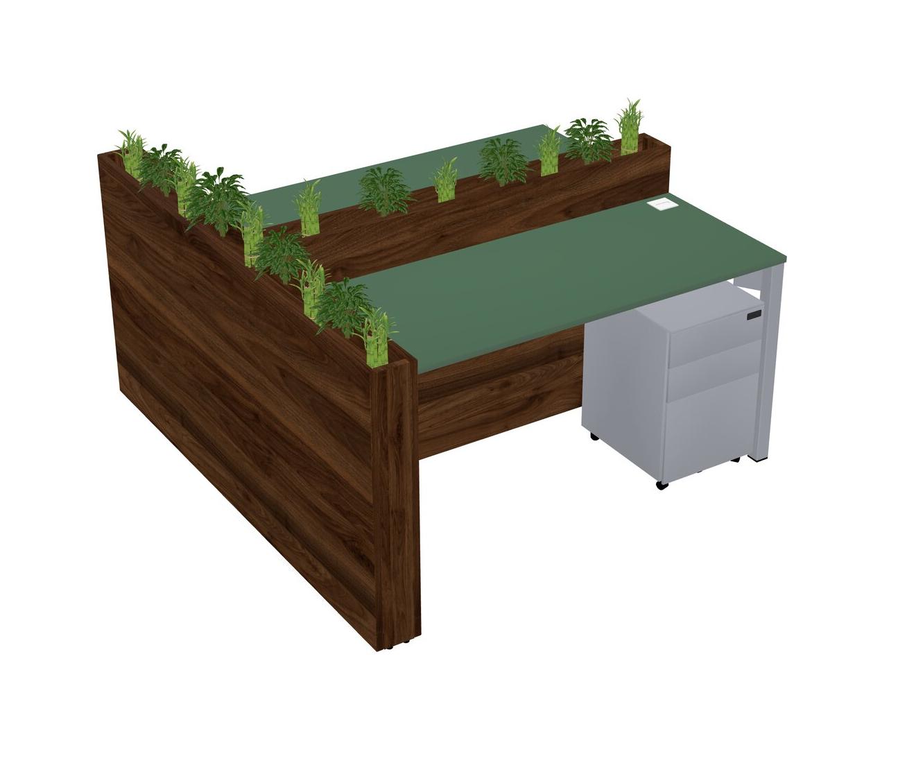 Green Rectangular Shared Office Desk System Metal Mobile Drawers (Pots & Plants Sold Separately)