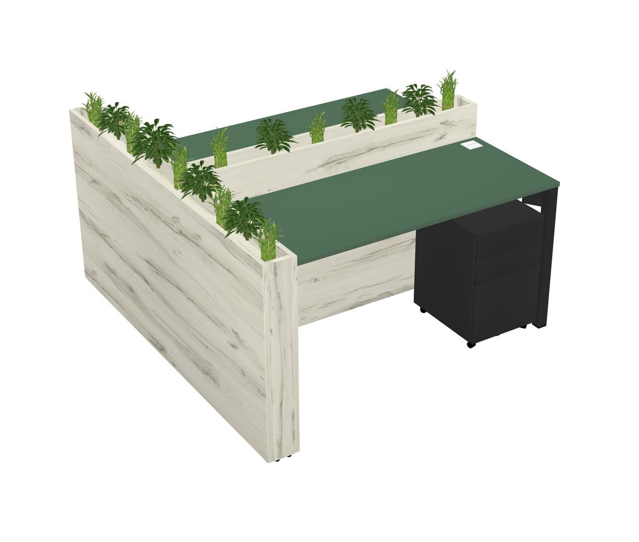 Green Rectangular Shared Office Desk System Metal Mobile Drawers (Pots & Plants Sold Separately)