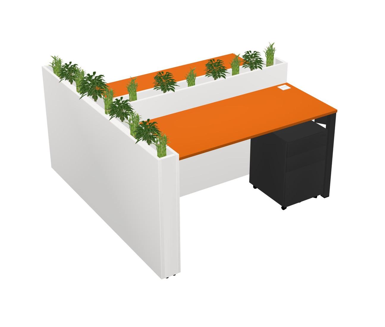 Orange Rectangular Shared Office Desk System Metal Mobile Drawers (Pots & Plants Sold Separately)