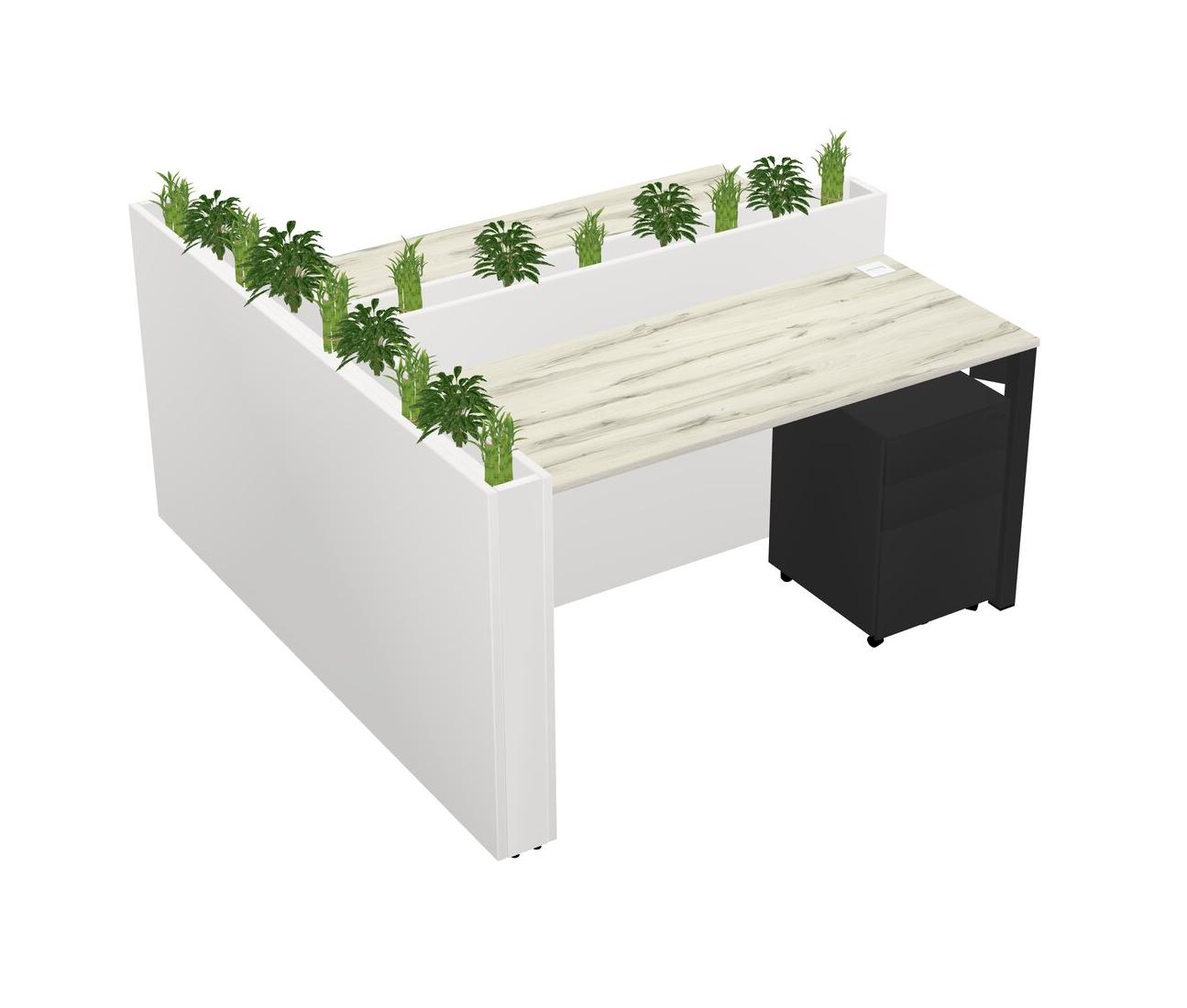 Heinne Holz Rectangular Shared Office Desk System Metal Mobile Drawers (Pots & Plants Sold Separately)