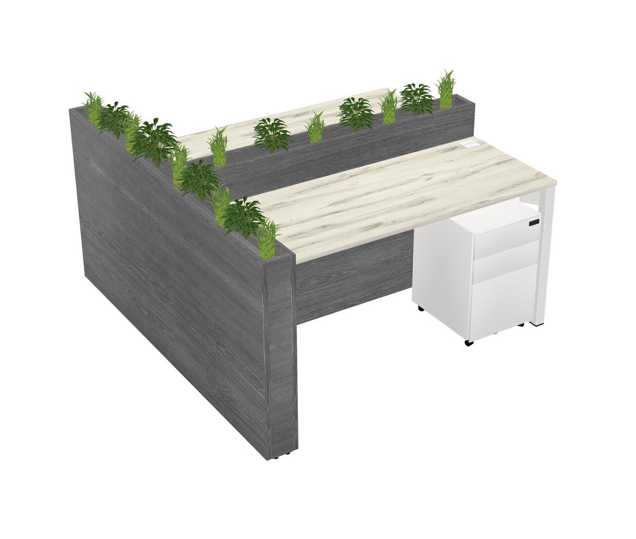 Heinne Holz Rectangular Shared Office Desk System Metal Mobile Drawers (Pots & Plants Sold Separately)